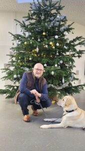 Parmi les très nombreux partenariats souhaités par M. SOIGNEUX, celui avec l’association des chiens guides d’aveugles d’Ile de France basée à Coubert. Ici avec VENOM, jeune labrador.