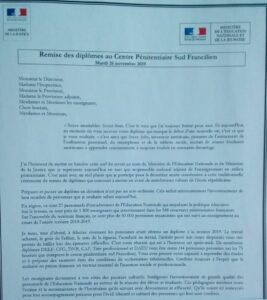 M. SOIGNEUX se rendait également dans certaines prisons pour remettre des diplômes aux personnes détenues qui suivent des cours. Ci-dessous, un extrait de son discours de remise des diplômes au centre pénitentiaire de Réau (77).