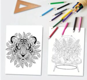 Les scientifiques affirment que le coloriage est une activité qui engage plus de parties de votre cerveau que vous ne le pensez. Si, techniquement, vous vous concentrez sur ce qui se trouve sur la page, votre esprit est également aux prises avec d’autres éléments : choisir des couleurs dans une palette, décider quelles lignes doivent être coloriées ou laissées vierges, et décider du temps que vous devez consacrer à chaque page. Vous réfléchissez également à la manière dont votre travail s’inscrit dans un ensemble plus vaste – comment une page s’articule-t-elle avec une autre ? Cela crée un sentiment d’accomplissement.